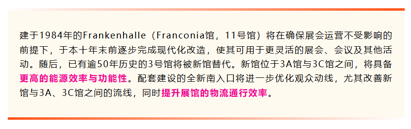 · 重点项目:现代化改造Frankenhalle并新建3号馆及南入口