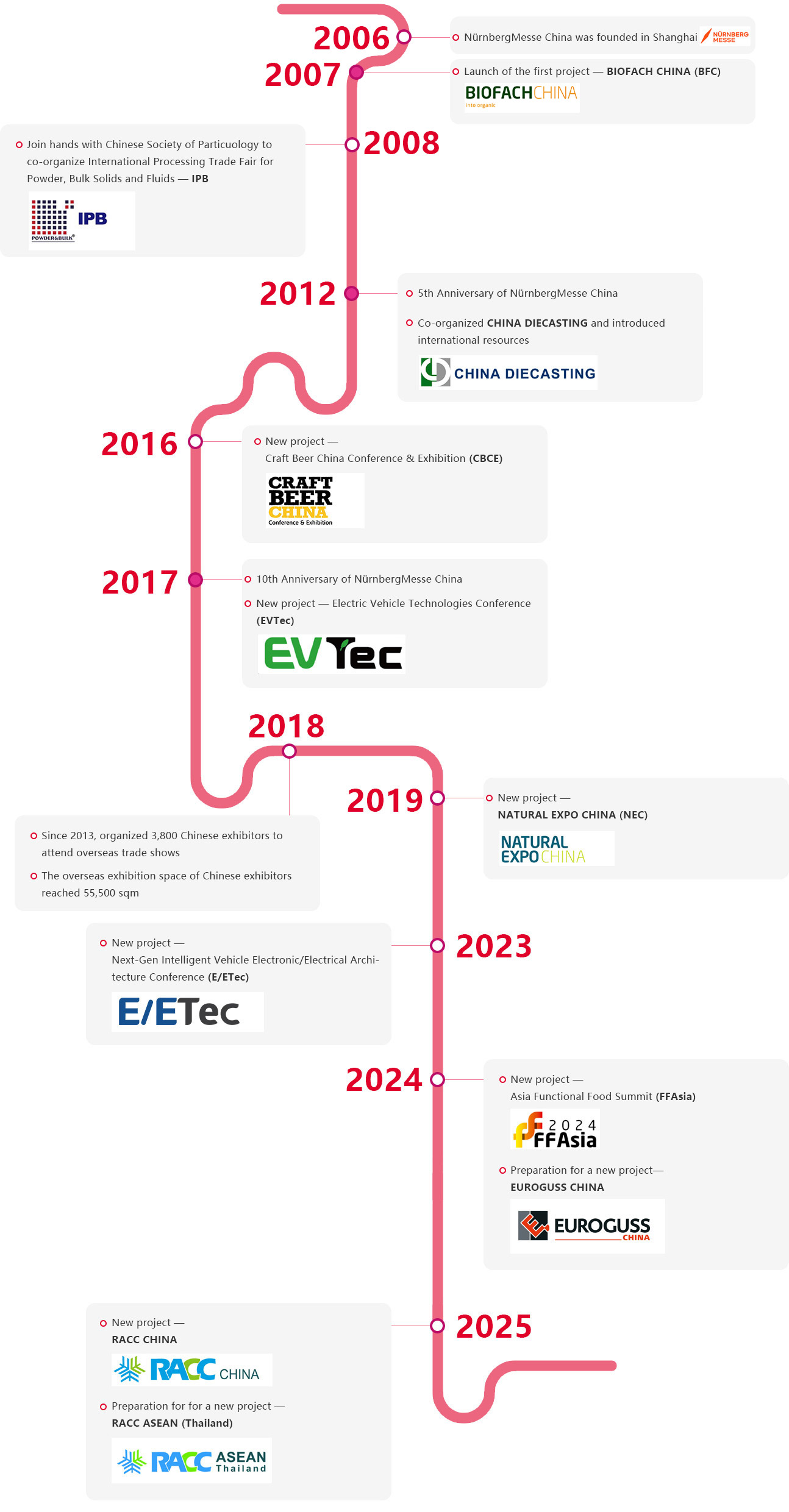 As the only wholly-owned subsidiary of the NürnbergMesse Group in China, NürnbergMesse China Co., Ltd. was established in Shanghai in 2006. Over the years, the company has successfully organized and co-hosted more than ten renowned exhibitions and conferences across various industries in China.